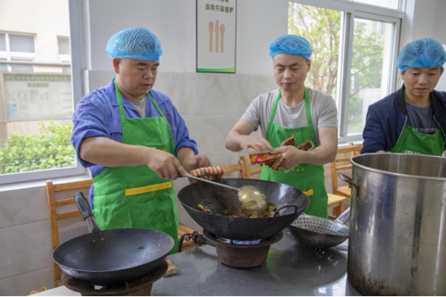 上午8点开始,食堂里各小组的美食家们陆续开始忙碌,各自大展身手,近30道菜肴和点心供大家品鉴,不仅有深受大家喜爱的小龙虾、牛排、泡椒凤爪,还有双皮奶、芋圆烧仙草、千层蛋糕等甜品,琳琅满目的菜肴让活动现场香飘四溢。